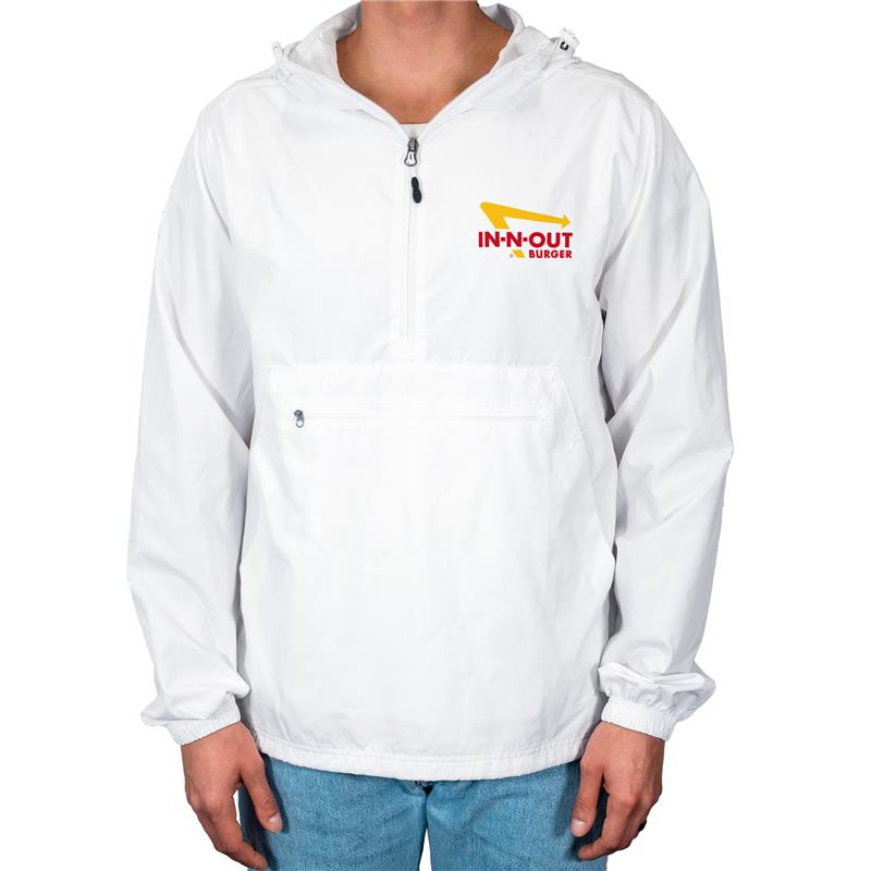 Lightweight and versatile, our white quarter-zip windbreaker features our full-color classic In-N-Out® logo on the left chest.