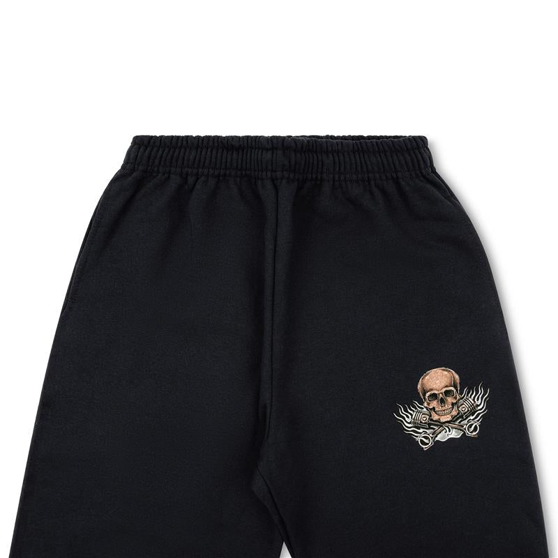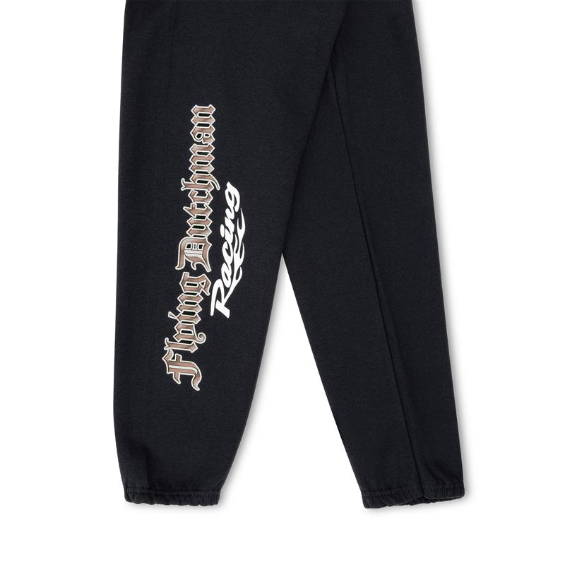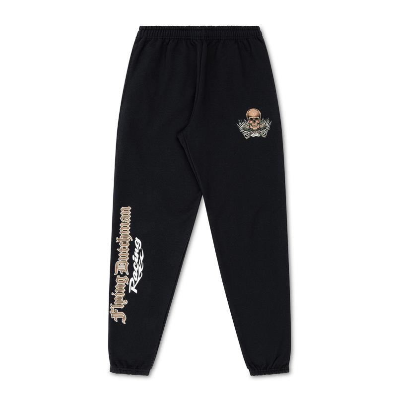 Built for comfort, these black fleece sweatpants feature our Flying Dutchman Racing Skull logo with crossed pistons on the left leg and 'Flying Dutchman Racing' down the right leg.